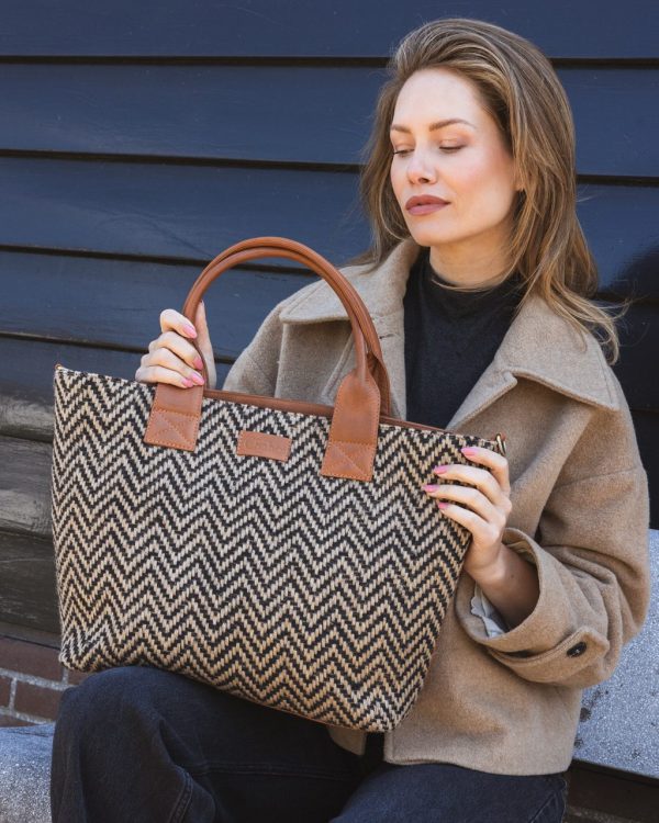 Zoek je een elegante én ruime tas die je moeiteloos meeneemt naar werk, studie of een dagje shoppen? Dan is de Romio Shopper jouw perfecte match. Deze stijlvolle shopper combineert caramel-zwart jacquard met een leren achterzijde, en is zowel praktisch als een echte blikvanger.