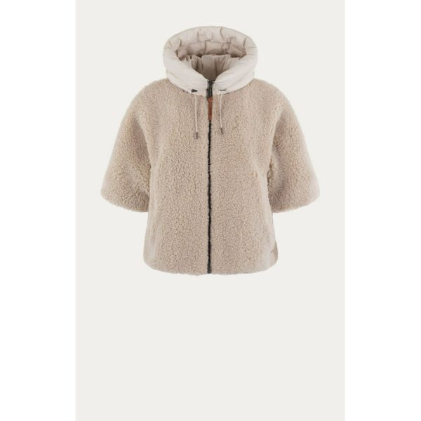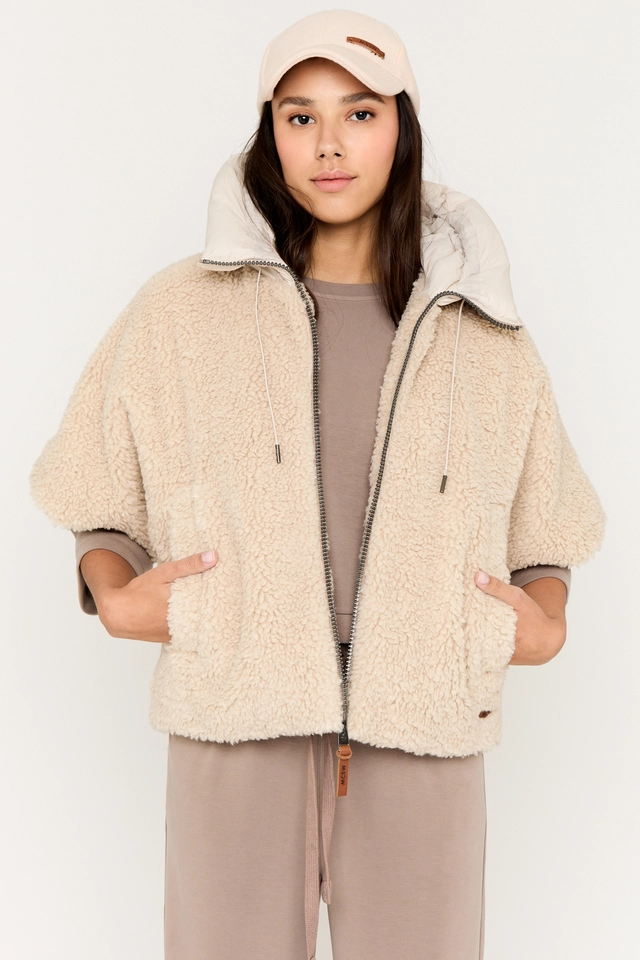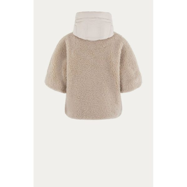 Deze korte jas van Moscow combineert een teddylook met warme donsvoering. De jas is gemaakt van een zachte teddy stof aan de buitenkant en gevuld met eendendons en veren voor optimale warmte. Het model heeft korte mouwen, een stevige ritssluiting, een gewatteerde capuchon met trekkoord en praktische steekzakken. Ideaal voor frisse herfstdagen of als stijlvol laagje in de winter. Gemaakt van duurzaam polyester.